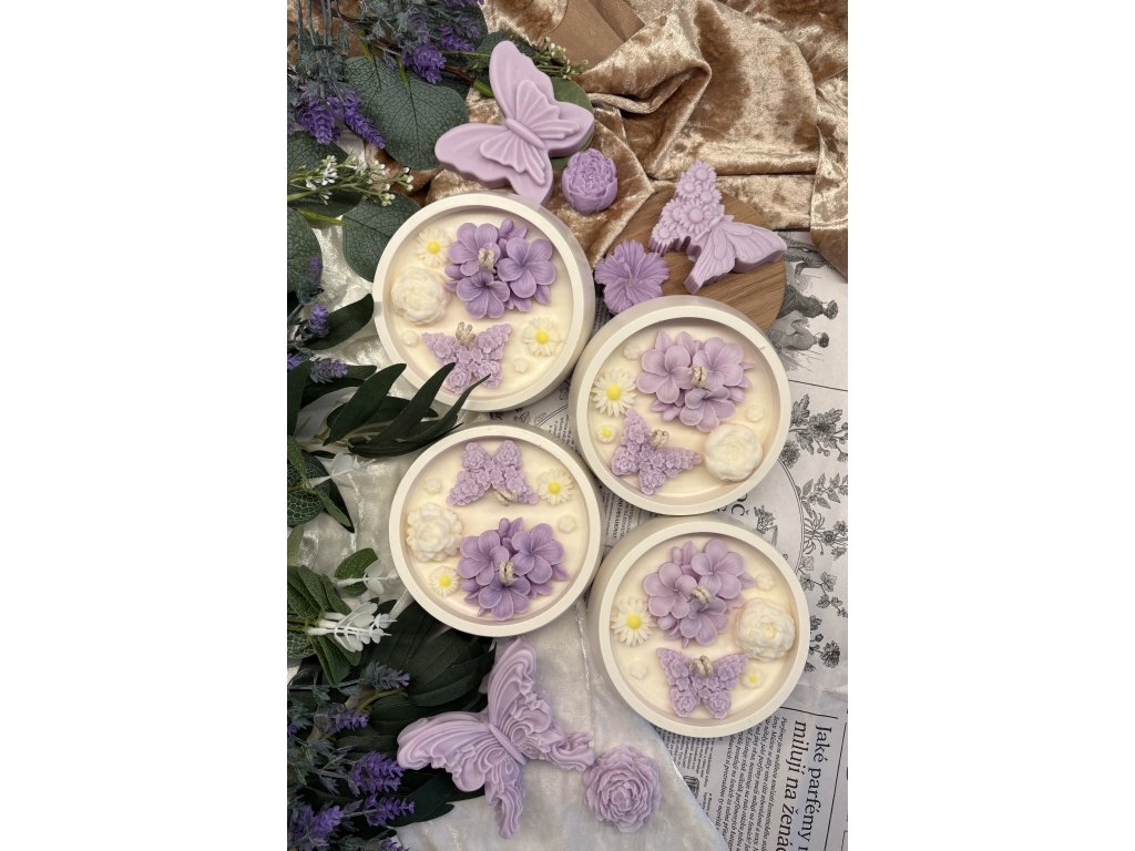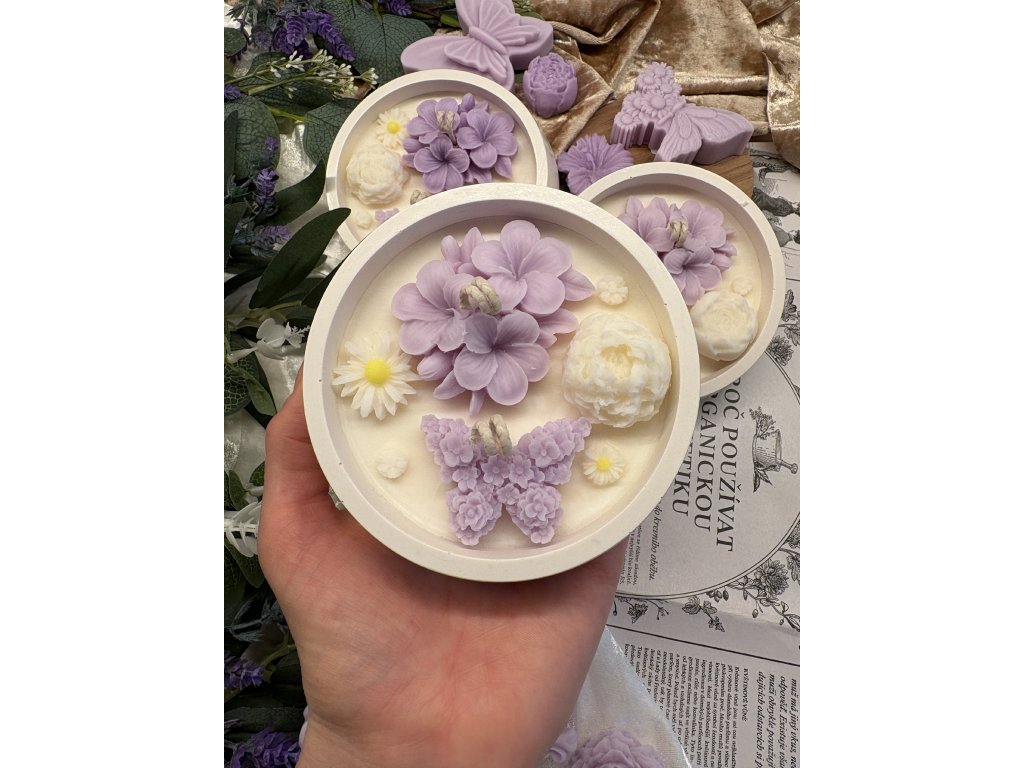 - Vosk: sójový (100% přírodní vosk), květinové přízdoby sójový a včelí vosk