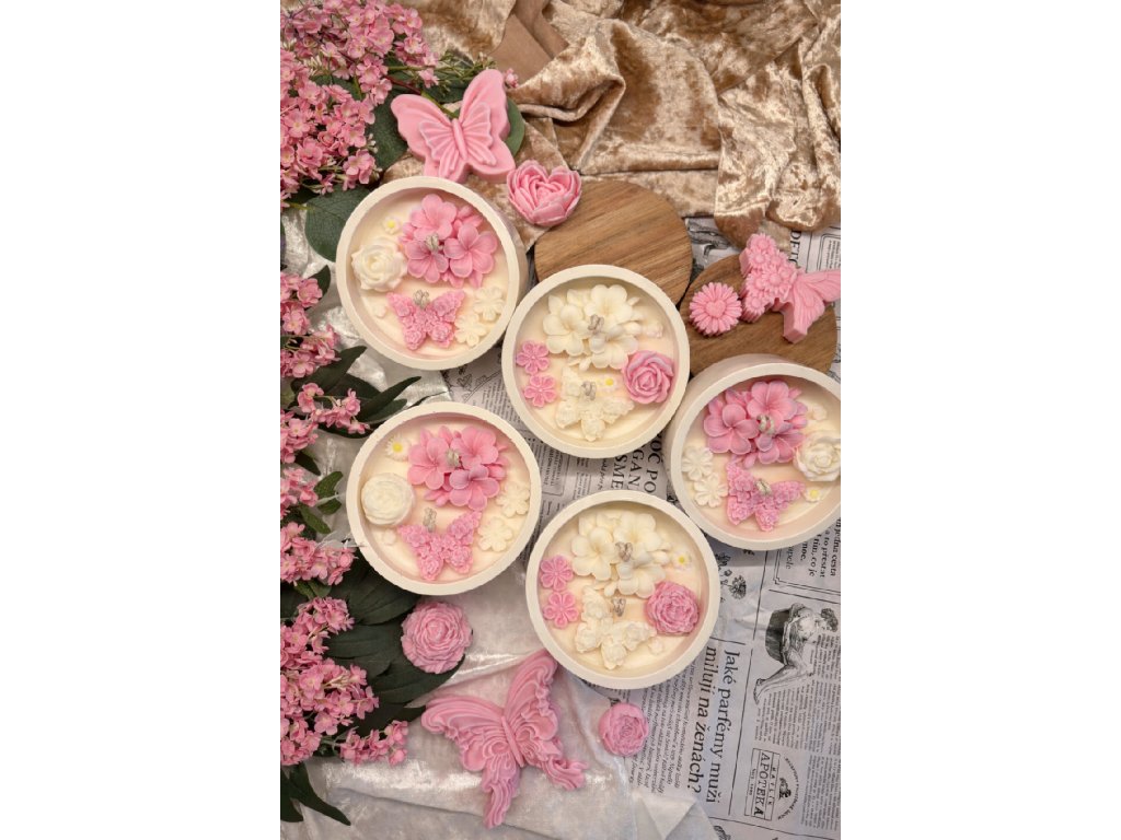 - Vosk: sójový (100% přírodní vosk), květinové přízdoby sójový a včelí vosk