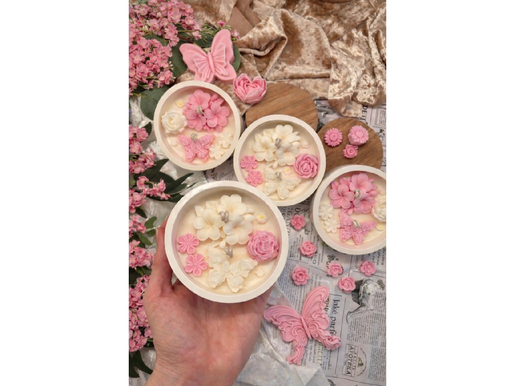 Každá svíčka je originální a může mít jiné uspořádání květin. Případně se může malinko lišit odstín barev.