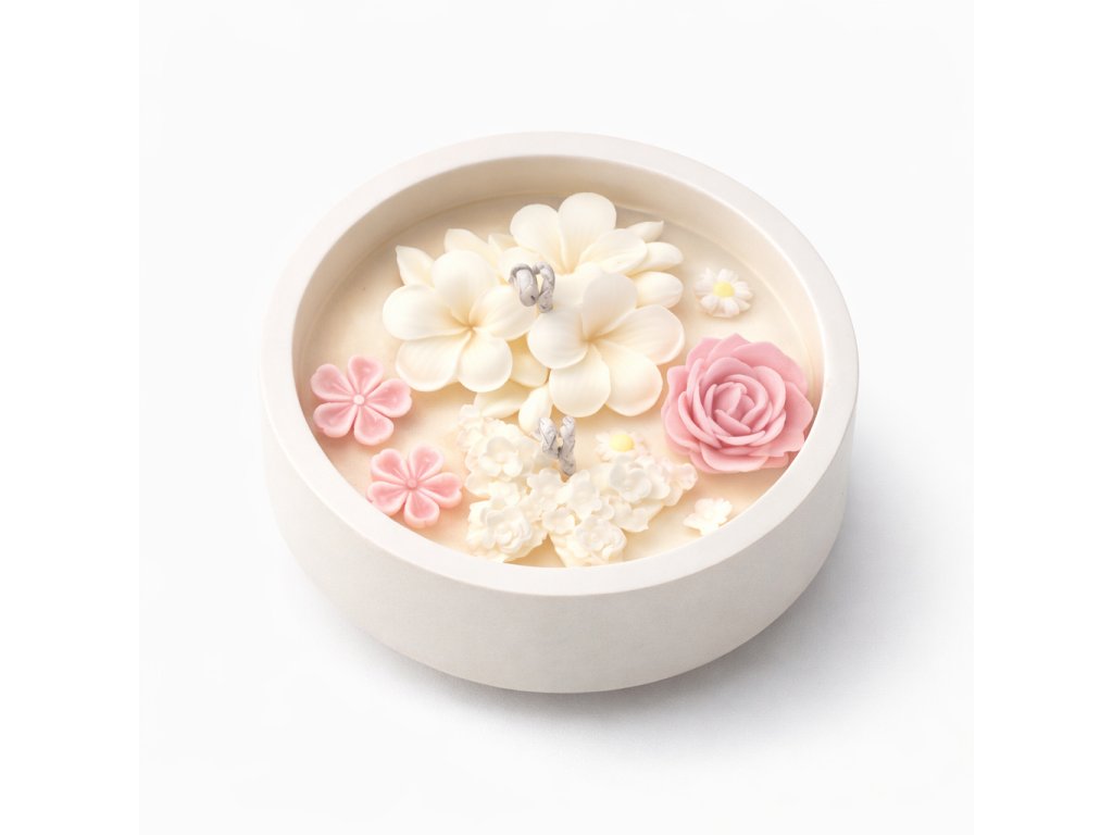 - Přírodní sójový vosk v misce, květinky sójový vosk se včelím voskem